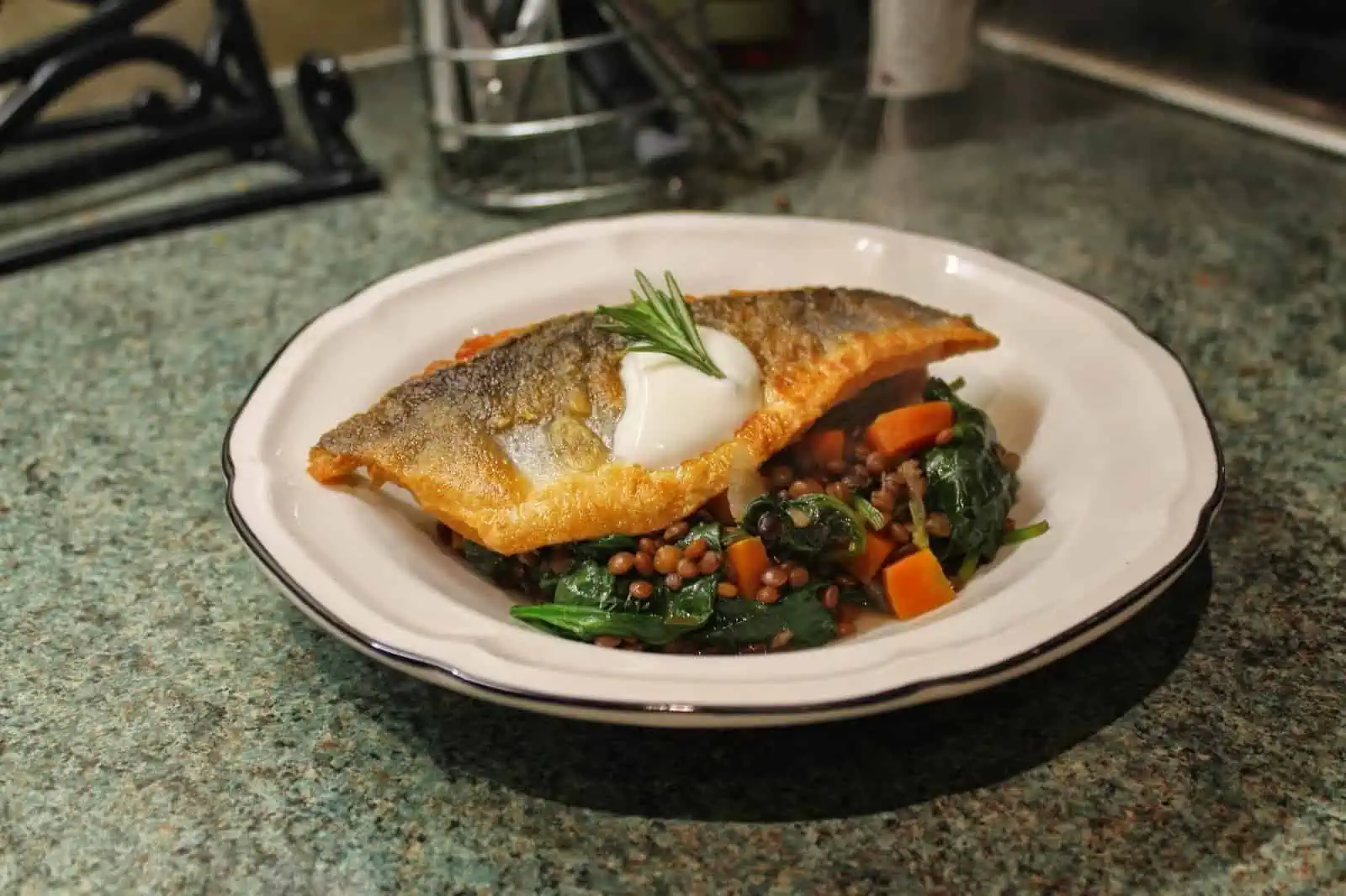 2. Pan Fried Sea Bass with Lentils