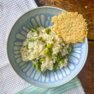 This risotto is spring in a bowl – creamy and full of fresh asparagus flavour. It’s elegant enough for a weekend meal, but simple enough for a weeknight! The parmesan crisps add that extra bit of crunch and savoury depth that makes it extra special.