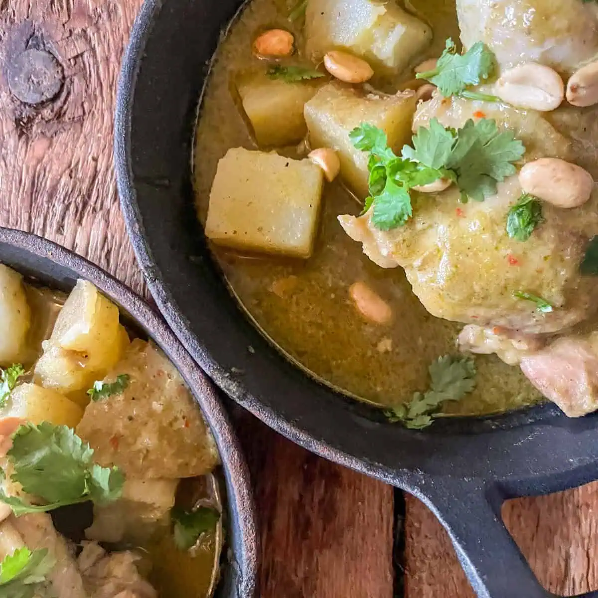 The potatoes soak up all of that wonderful flavour and become soft little nuggets of deliciousness in the sauce. Serve with white rice and topped with peanuts for a really tasty meal.