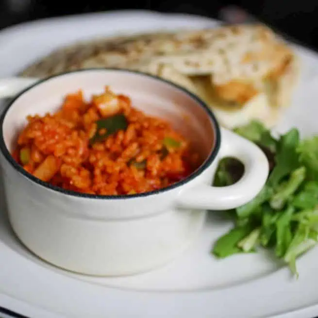 When I asked my husband what he would like to eat recently, I was given this very specific request: “Chicken Pittas with Spicy Rice please”. This is what he eats whenever we visit a particular popular Portuguese chicken restaurant (UK readers will know which cheeky restaurant I mean!)
