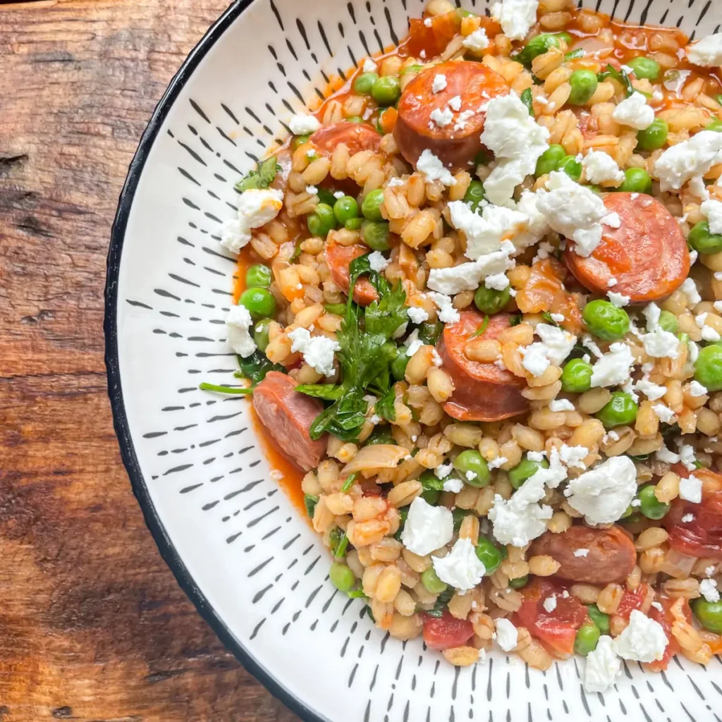 Chorizo and Pea Pearl Barley Risotto Recipe