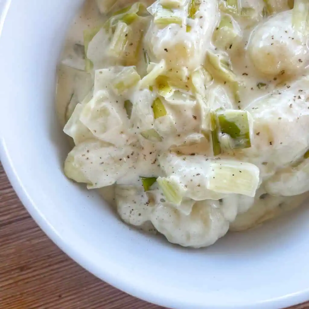 There’s nothing in this world more comforting than a big bowl of creamy leek gnocchi. It’s like a hug in a bowl.