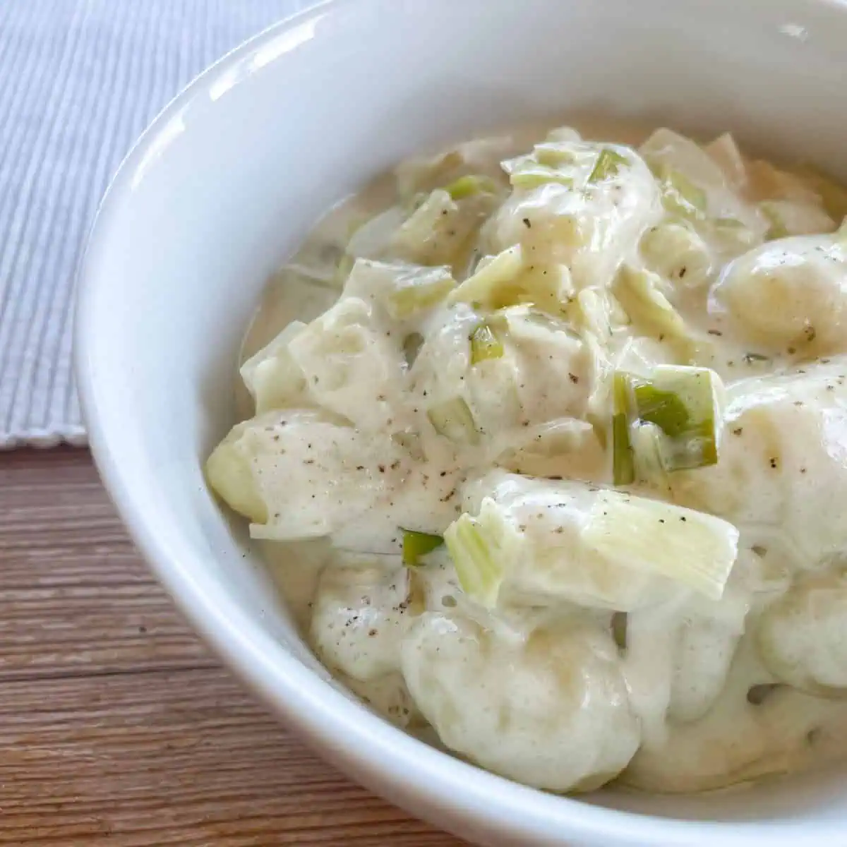 There’s nothing in this world more comforting than a big bowl of creamy leek gnocchi. It’s like a hug in a bowl.