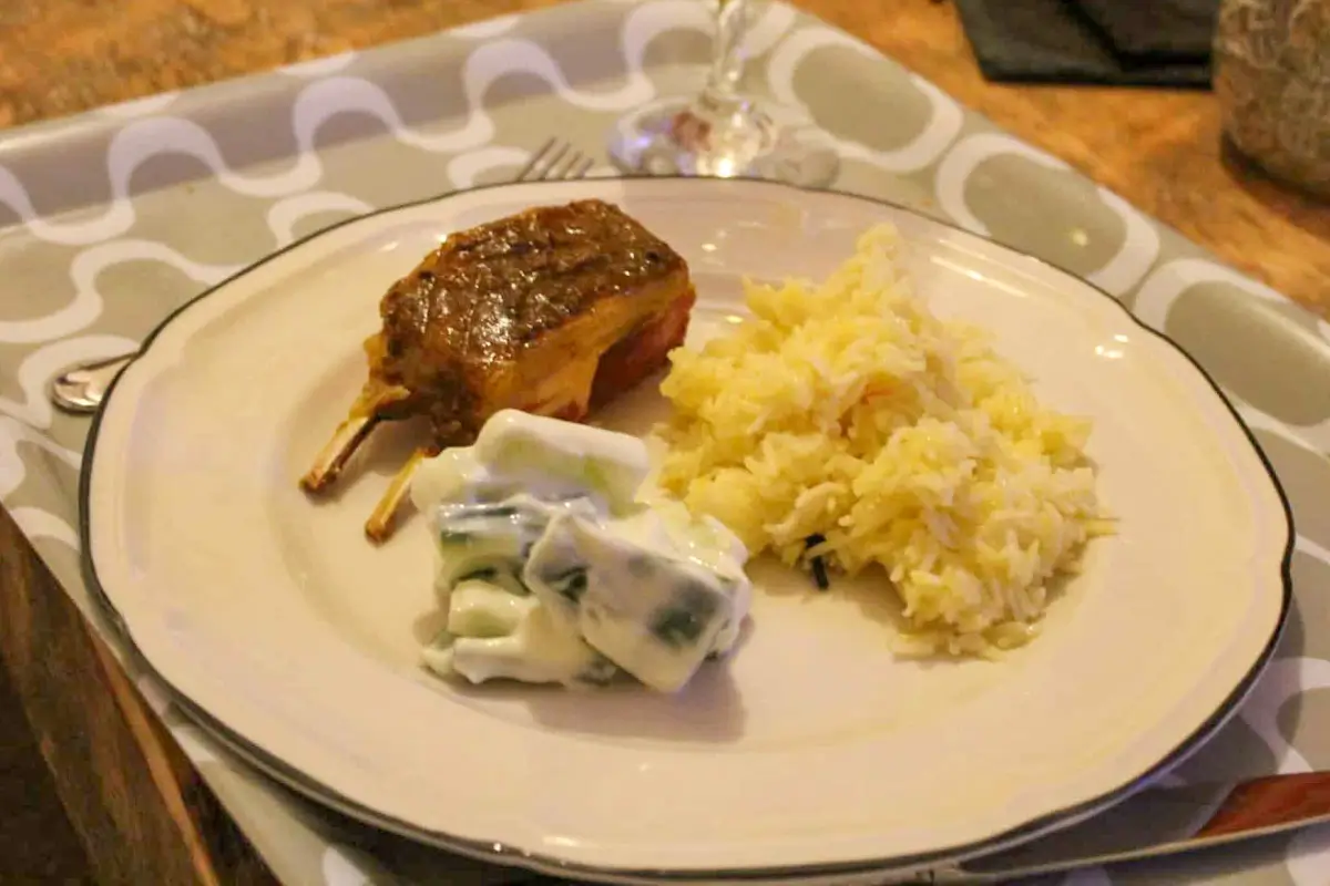 - Slice your cucumber and mix with the yoghurt and a pinch of salt in a bowl. You can serve this alongside your rack of lamb and rice. Enjoy!