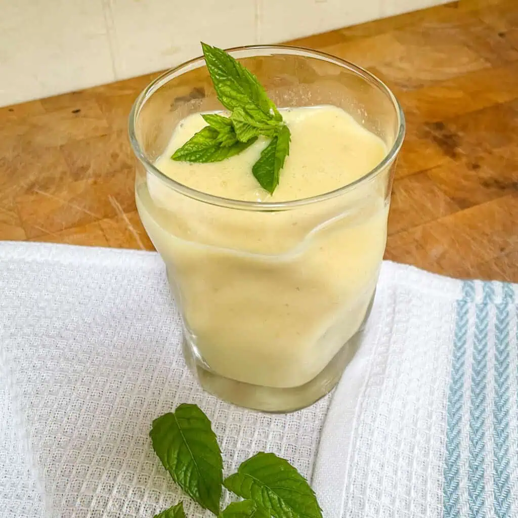 - Frozen mango – you CAN use fresh mango, but frozen mango has a number of benefits. There’s zero prep time – you don’t have to peel and chop. Plus, the frozen mango chills the smoothie, so it’s the perfect temperature when you come to drink it.