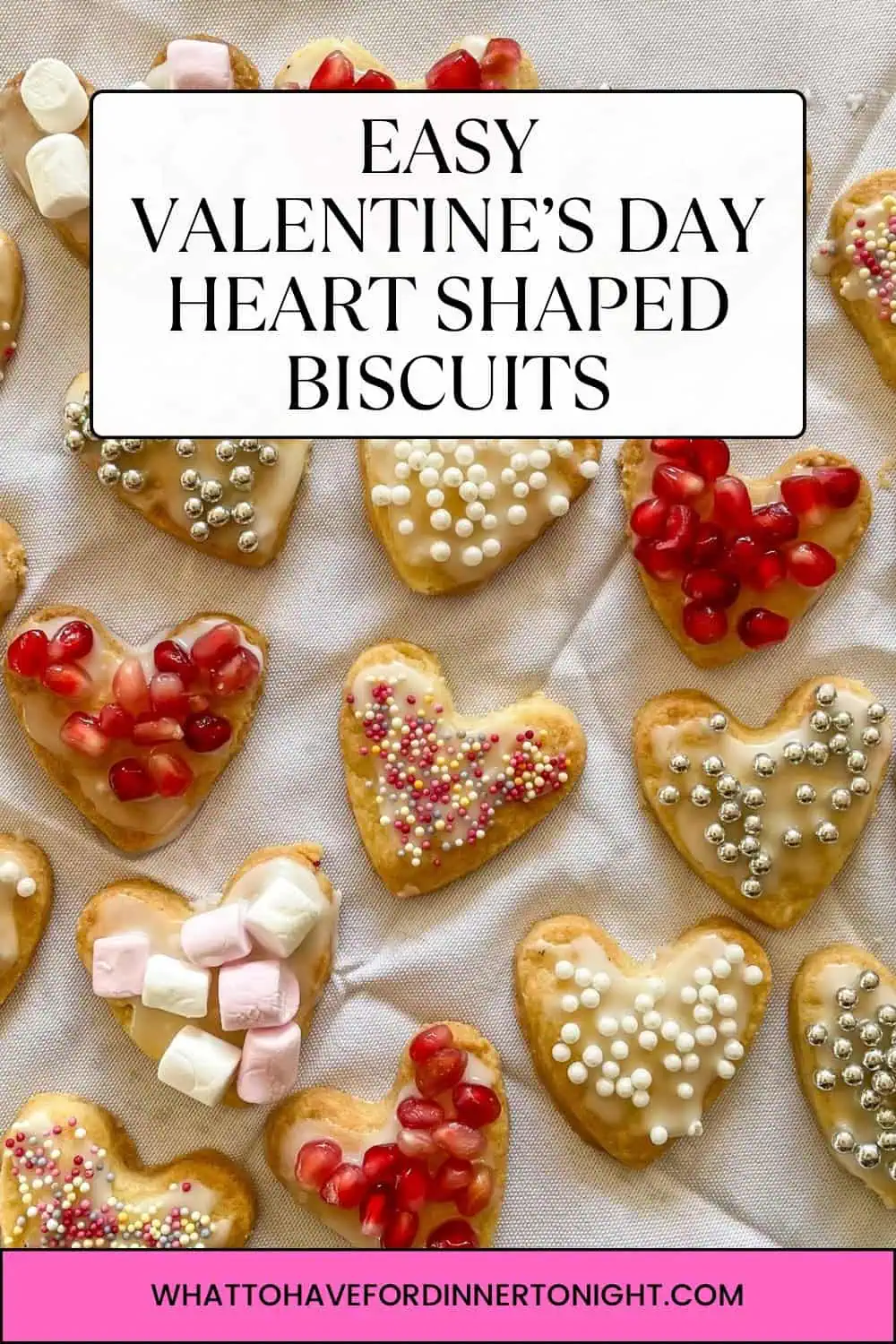 I top my heart shaped cookies with edible balls, hundreds and thousands, mini marshmallows and pomegranate seeds – but the joy of this recipe is that you can get really creative! Just stick to the pink theme and you’ll be golden!