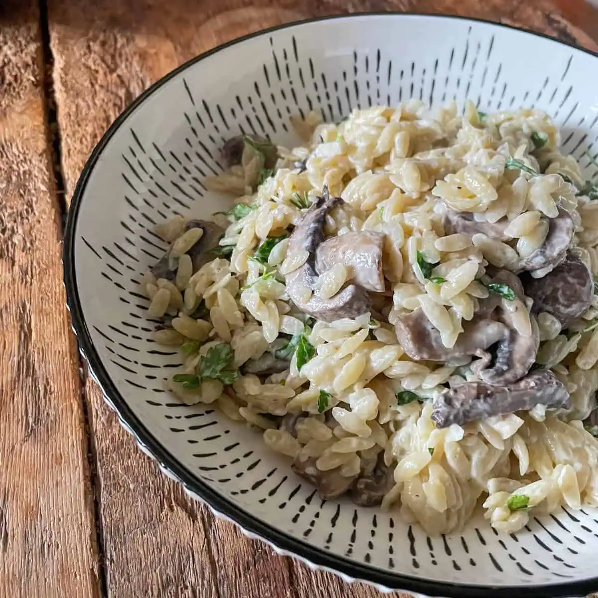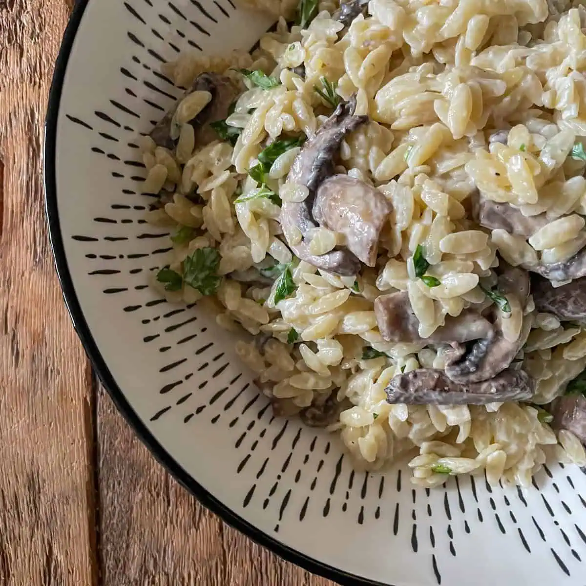 This creamy, vegetarian garlic mushroom orzo is ready in 15 minutes and tastes incredible!