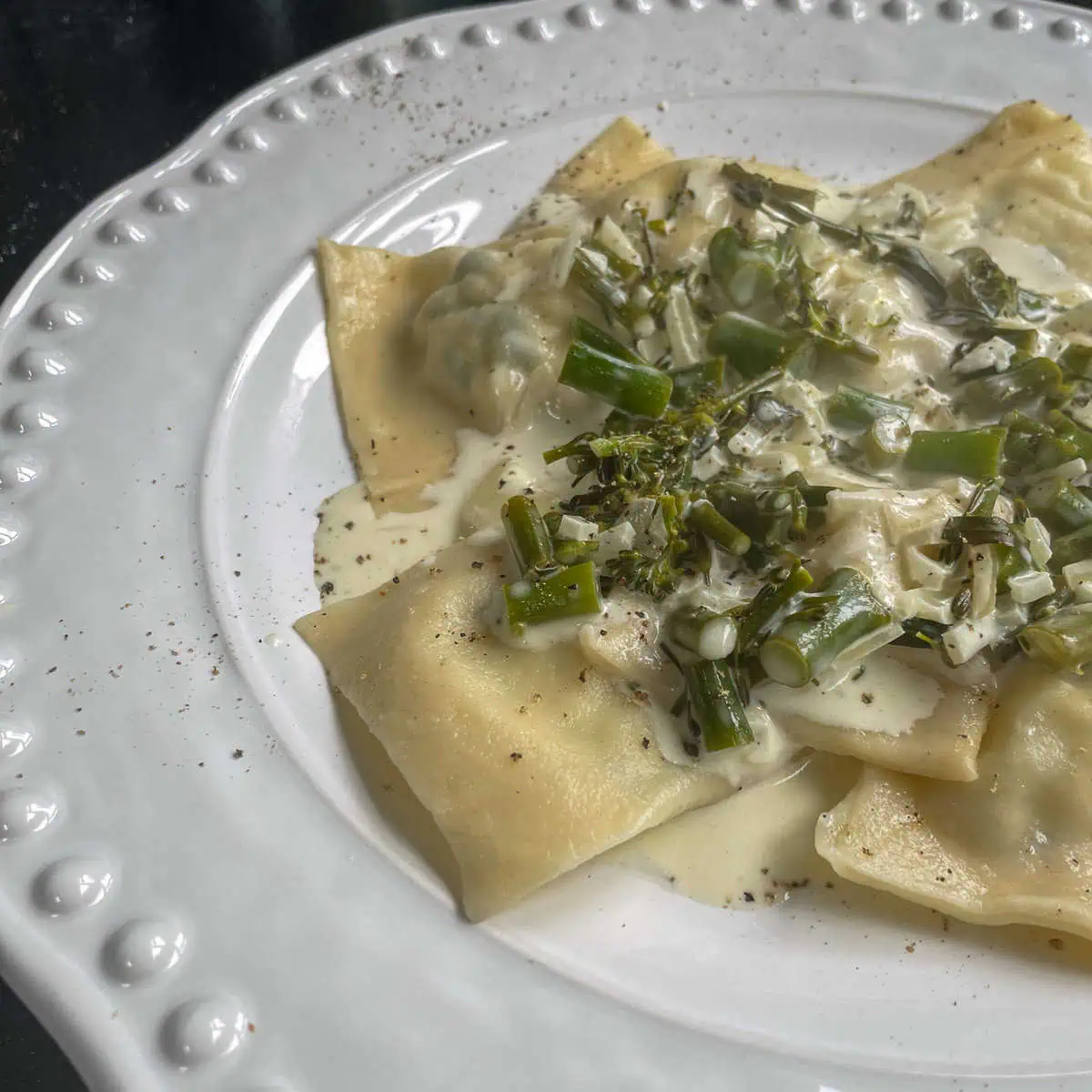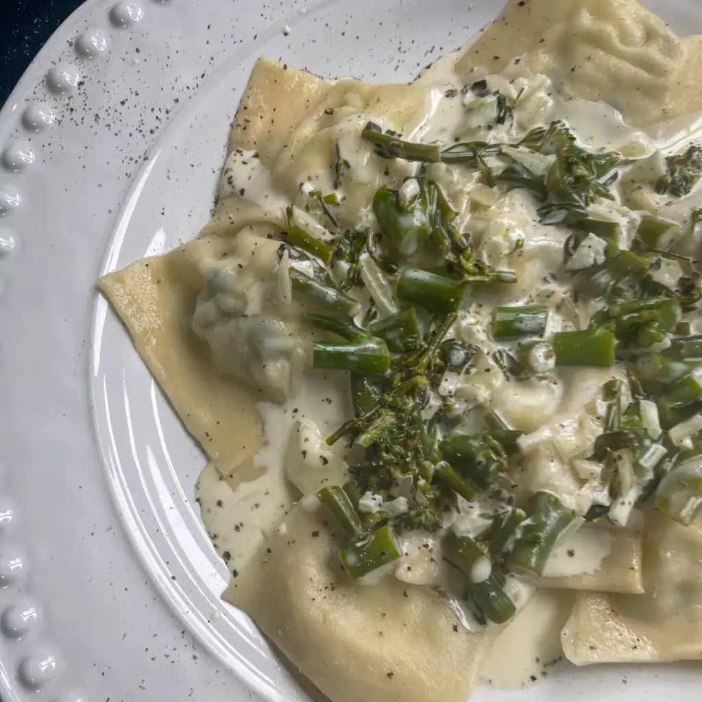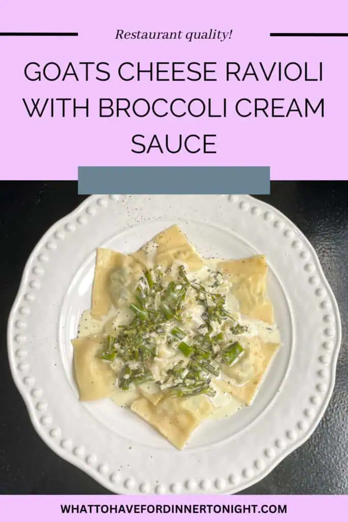 Goats Cheese Ravioli with Broccoli Cream Sauce