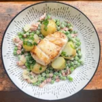Pan Fried Cod with Potatoes and Peas