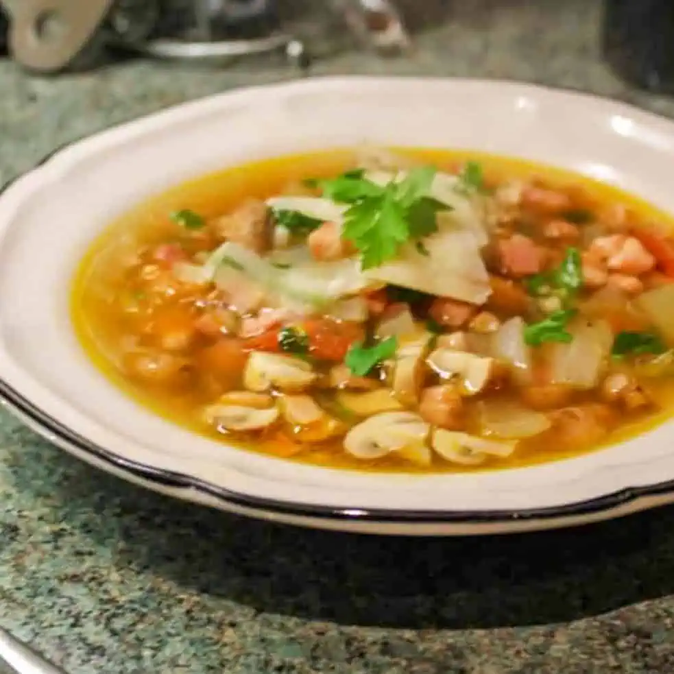 Pancetta, Mushroom and Spelt Broth