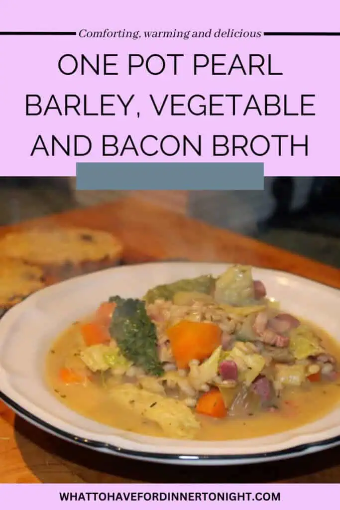 This one pot pearl barley, vegetable and bacon broth is a real winter warmer. It would be perfect on a wet, stormy day when you come through the door shivering and soaked to the bone.