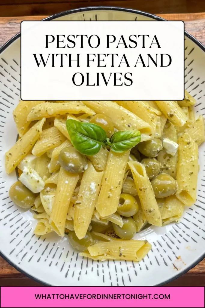 Pesto Pasta with Feta and Green Olives
