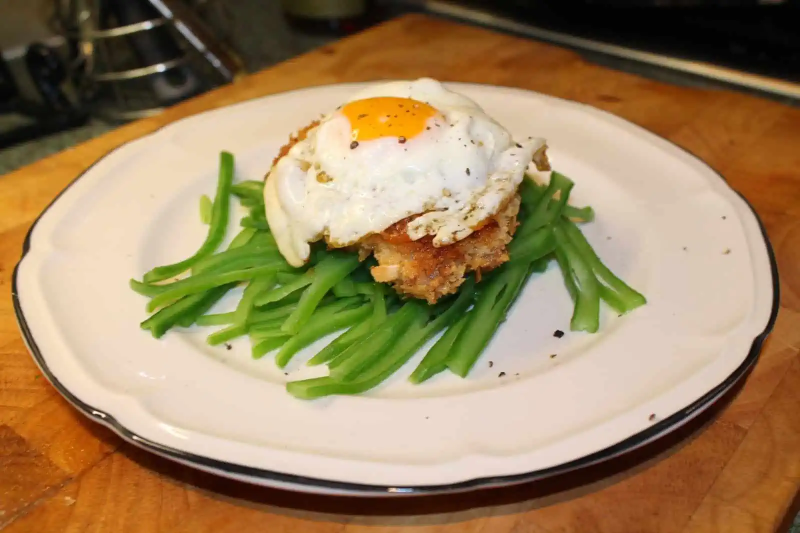 Everyone knows pork and egg go well together, think gammon and egg, and there’s no change here. Cook your eggs well and you’ll get lovely yolk sauce to go with your schnitzel.