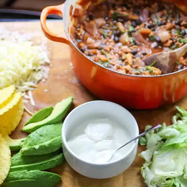 - Avocado, lettuce, cheese, soured cream – optional toppings – mix and match according to your preferences! You could also add jalapeños, guacamole, tomato, spring onions.