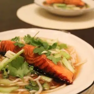 Soy Glazed Salmon with Miso Noodle Broth