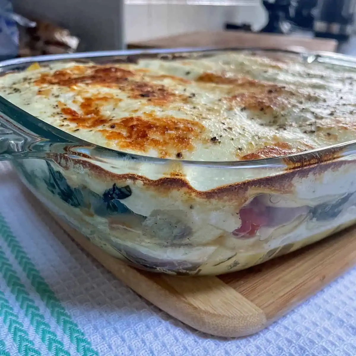- If you’re using dried lasagne sheets, add 100 ml of extra creme fraiche to keep it saucy.