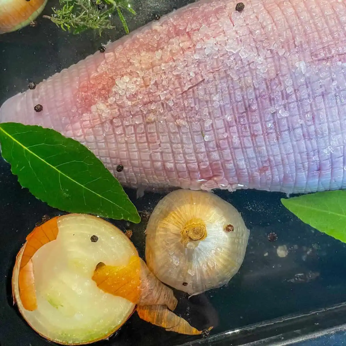 - Onions and garlic – you don’t need to peel or chop your onion and garlic. Just cut both in half so that the flavour starts infusing with the brine,